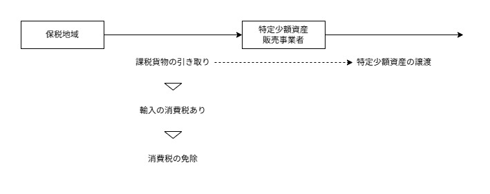 第八条の二 保税地域から引き取られる課税貨物のうち、特定少額資産販売事業者が行う特定少額資産の譲渡(第六条第一項の規定により消費税を課さないこととされるものを除く。次項において同じ。)に係るものについては、消費税を免除する。保税地域から引き取る課税課税のうち、